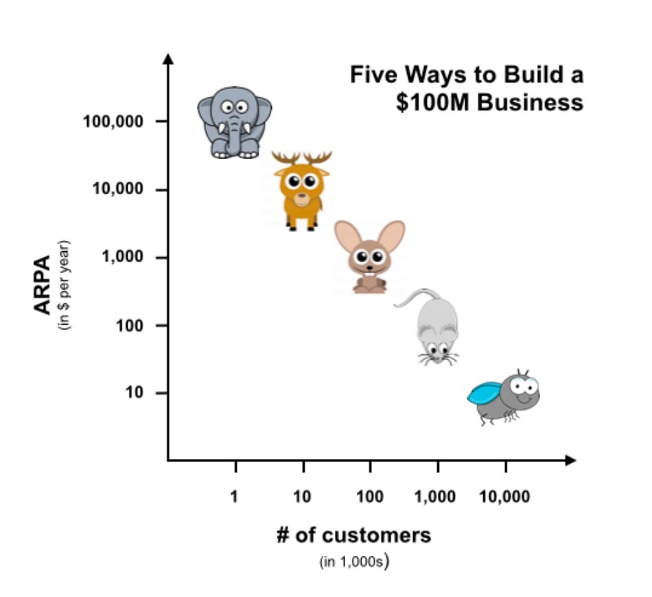 In this range, you’re hunting rabbits. We’re getting into SMB territory now, which means lower ARPAs and LTVs — which means lower CAC thresholds.