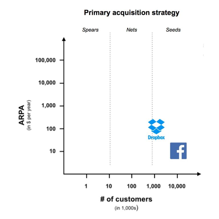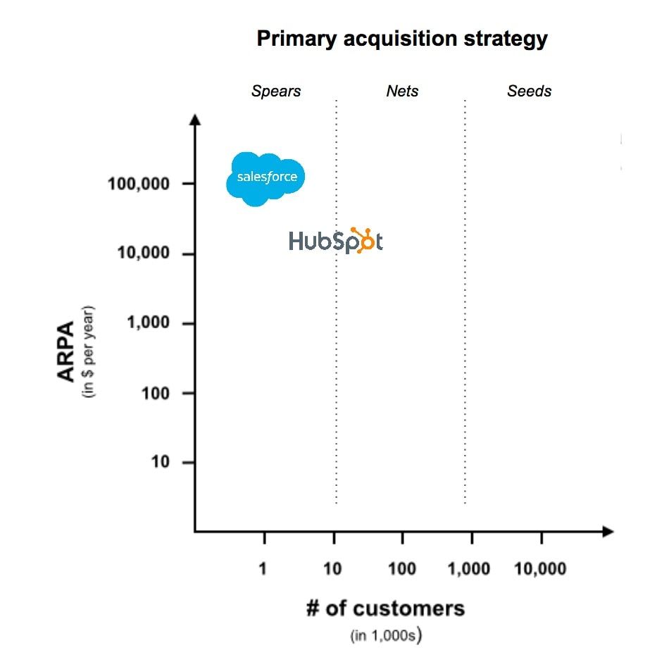 But if we layer Aaron Ross’ “Spears, Nets, Seeds” acquisition framework on top of it, it suddenly becomes a lot more useful for marketing.