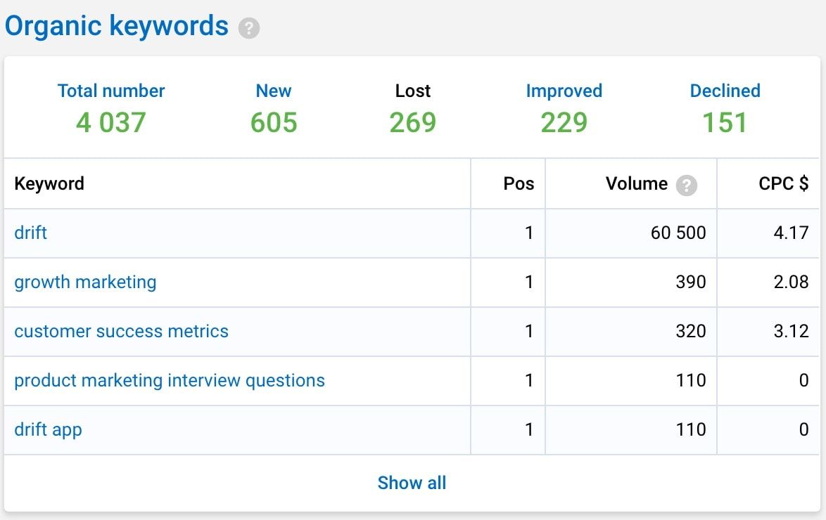 Let’s say I was analyzing what Drift was doing for search: