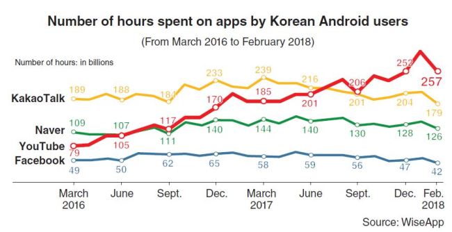 Interestingly, despite Naver having its own video service, YouTube continues to dominate.