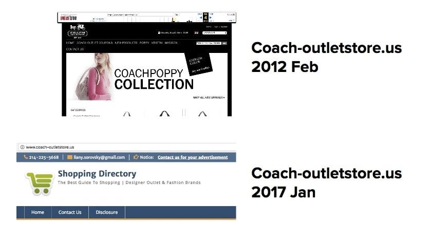 Some time ago, the below website used to be an outlet ecommerce store for Coach — a luxury fashion brand. Since it was the domain for a legitimate, famous brand, it got a lot of backlinks. And thus, backlinks from this domain were of high value.