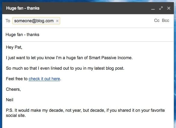 By mentioning someone in the blog post, Neil creates a genuine reason to email that person. This creates a potential warm connection, since Neil is offering value and not asking for something.